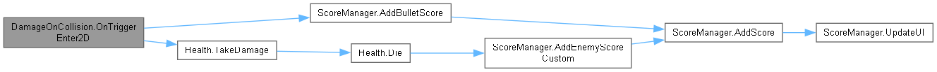 Hace referencia a ScoreManager.AddBulletScore(), damageToEnemy, damageToPlayer, destroySelf, ScoreManager.Instance y Health.TakeDamage().