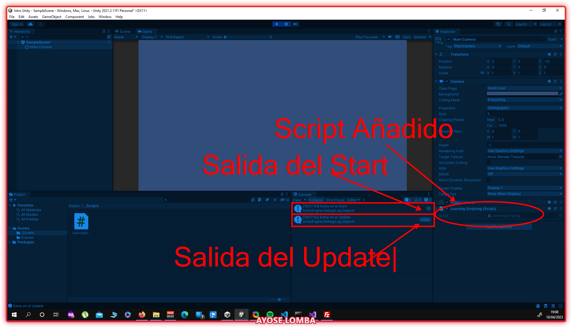 Para trabajar con lógica en Unity, utilizamos C# Scripts. Podemos crearlos desde la ventana Project con clic derecho → Create → C# Script.